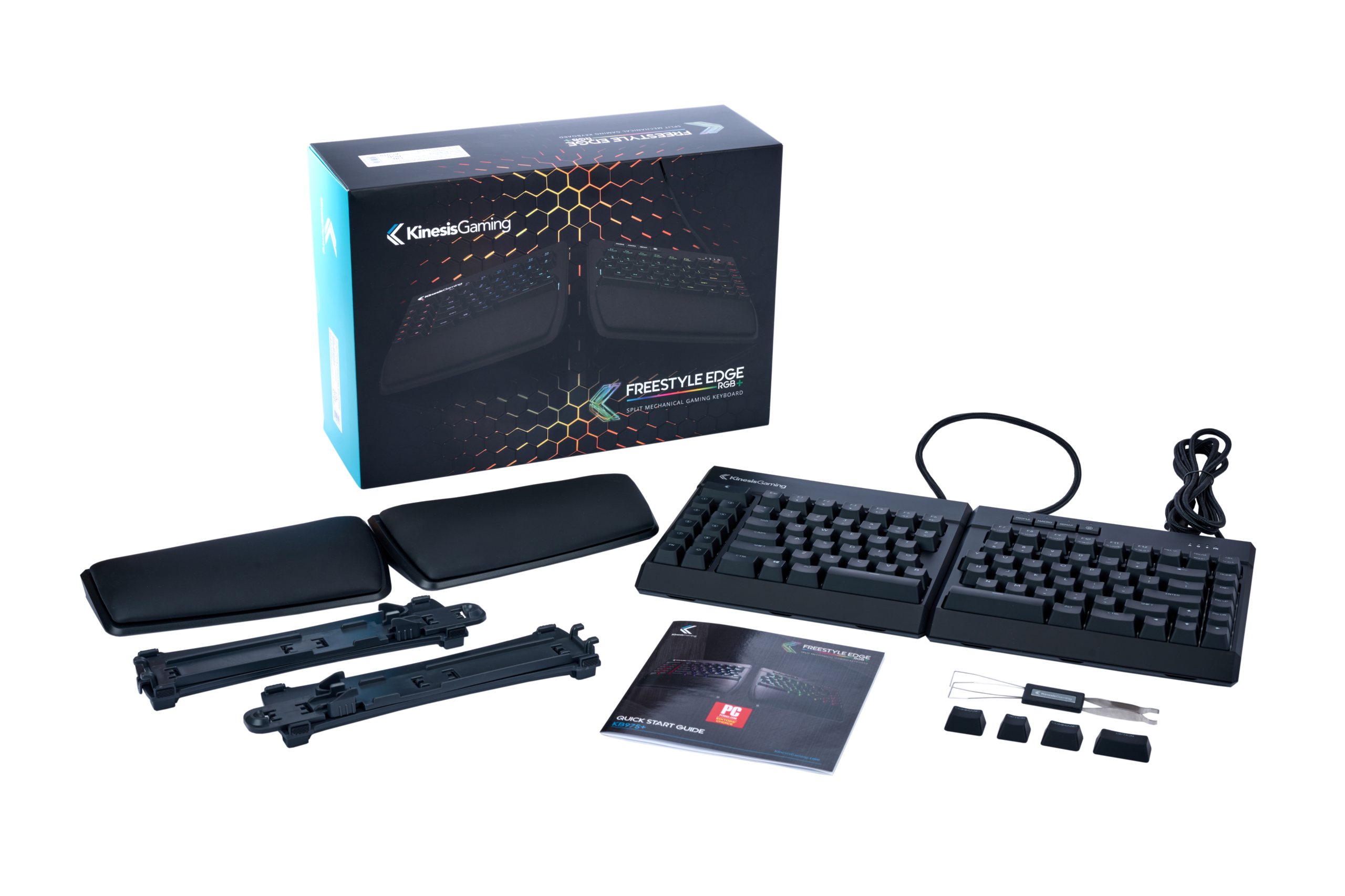 Freestyle Edge RGB Keyboard, Detachable Palm Supports, Detachable Lift Kit, 4 Mac Modifier Keycaps, Keycap and Keyswitch Removal Tool, Quick Start Guide